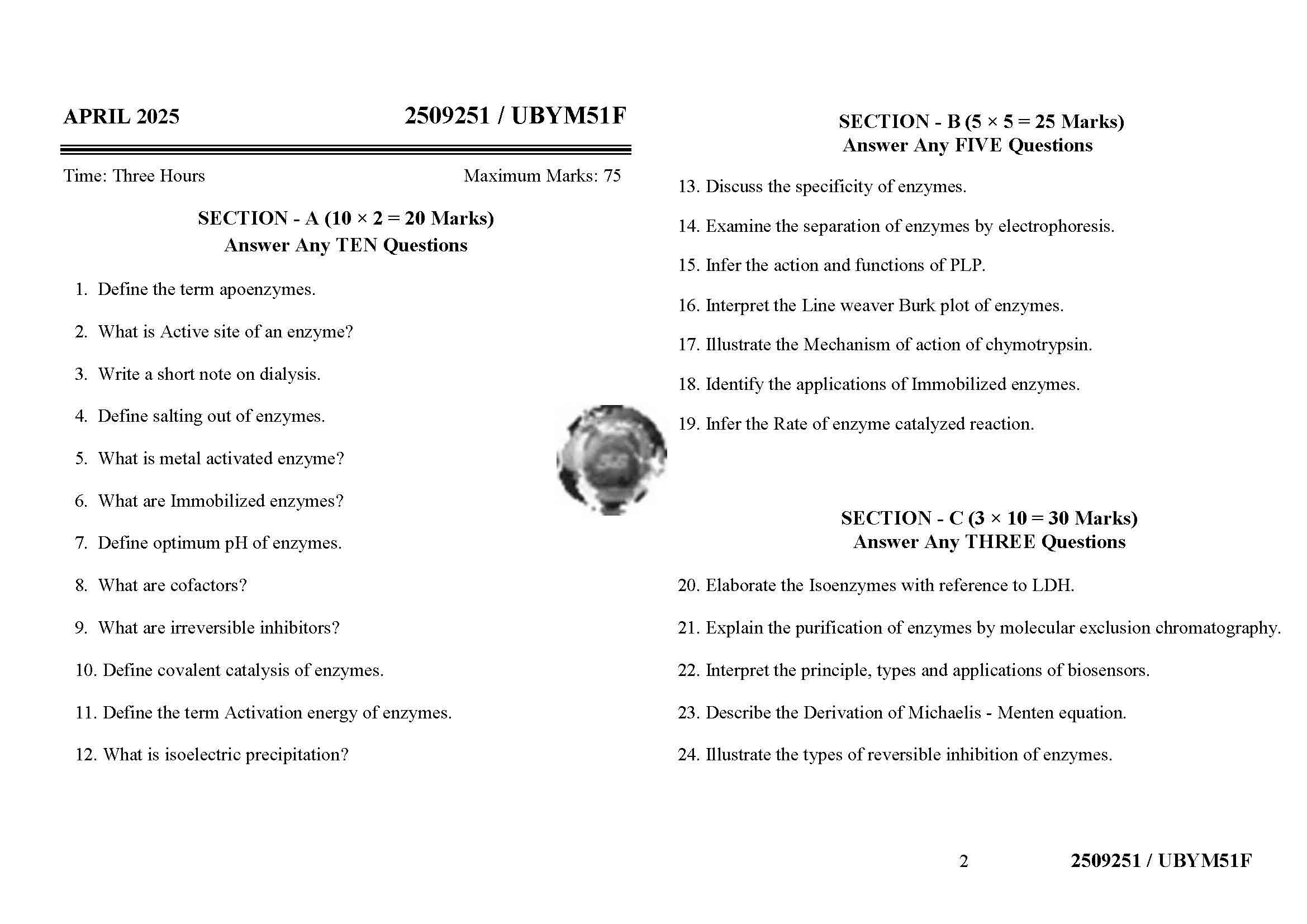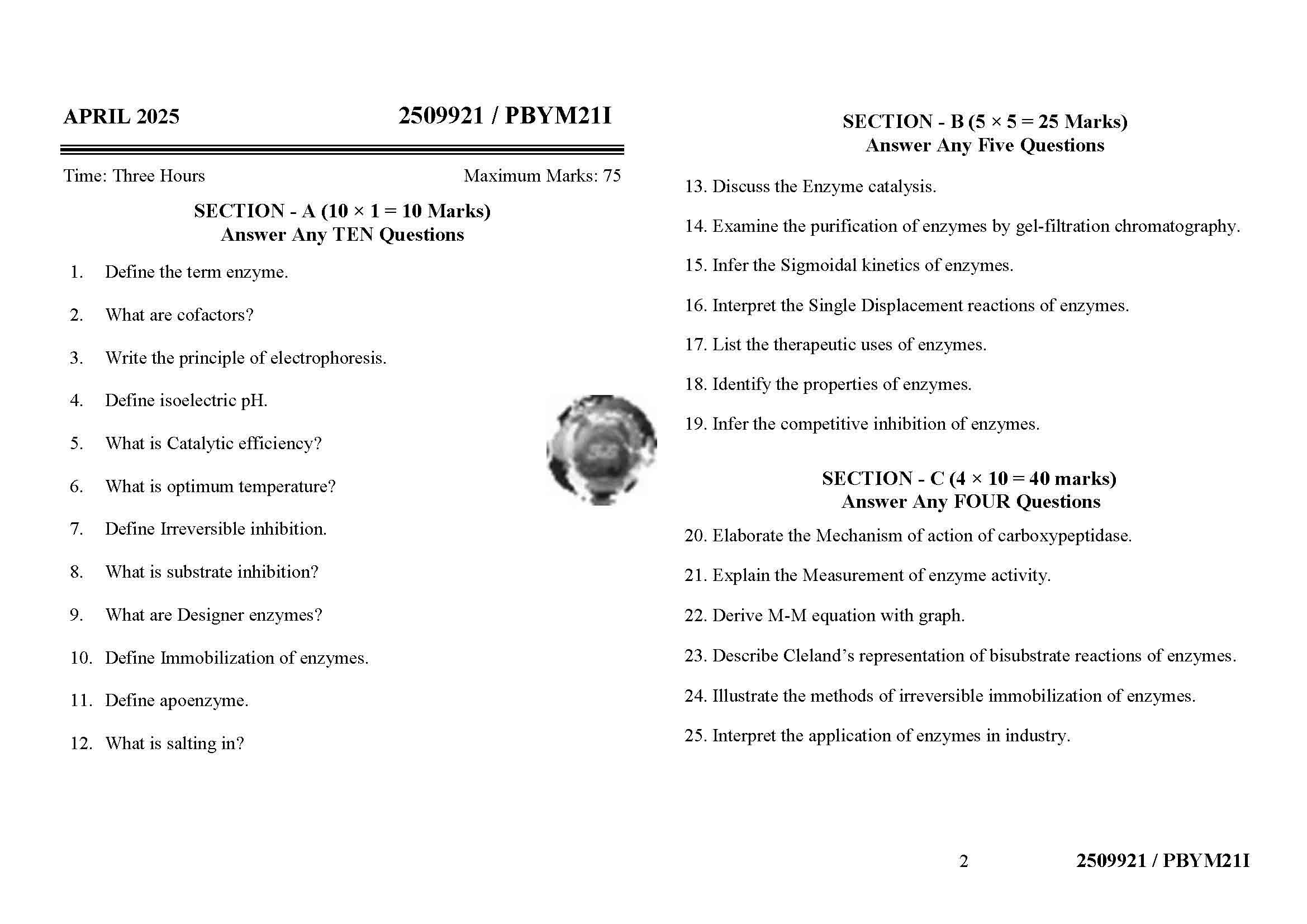 | 5. | Enzymes and Enzyme Technology / Enzymology | PBYM21A/PBYM21I | PBYM21I | PBYM21I | ||||