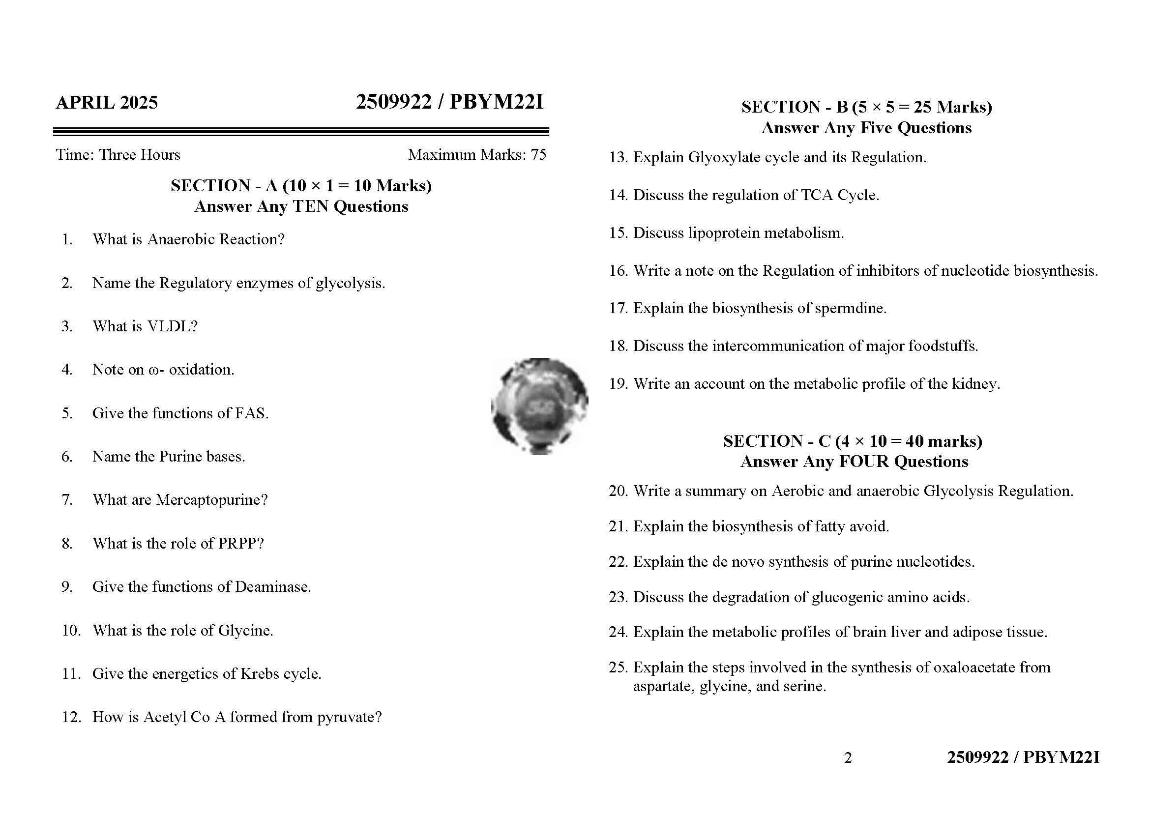 | 6. | Intermediary metabolism-I/Cellular Metabolism | PBYM22A/PBYM22I | PBYM22I | PBYM22I | ||||