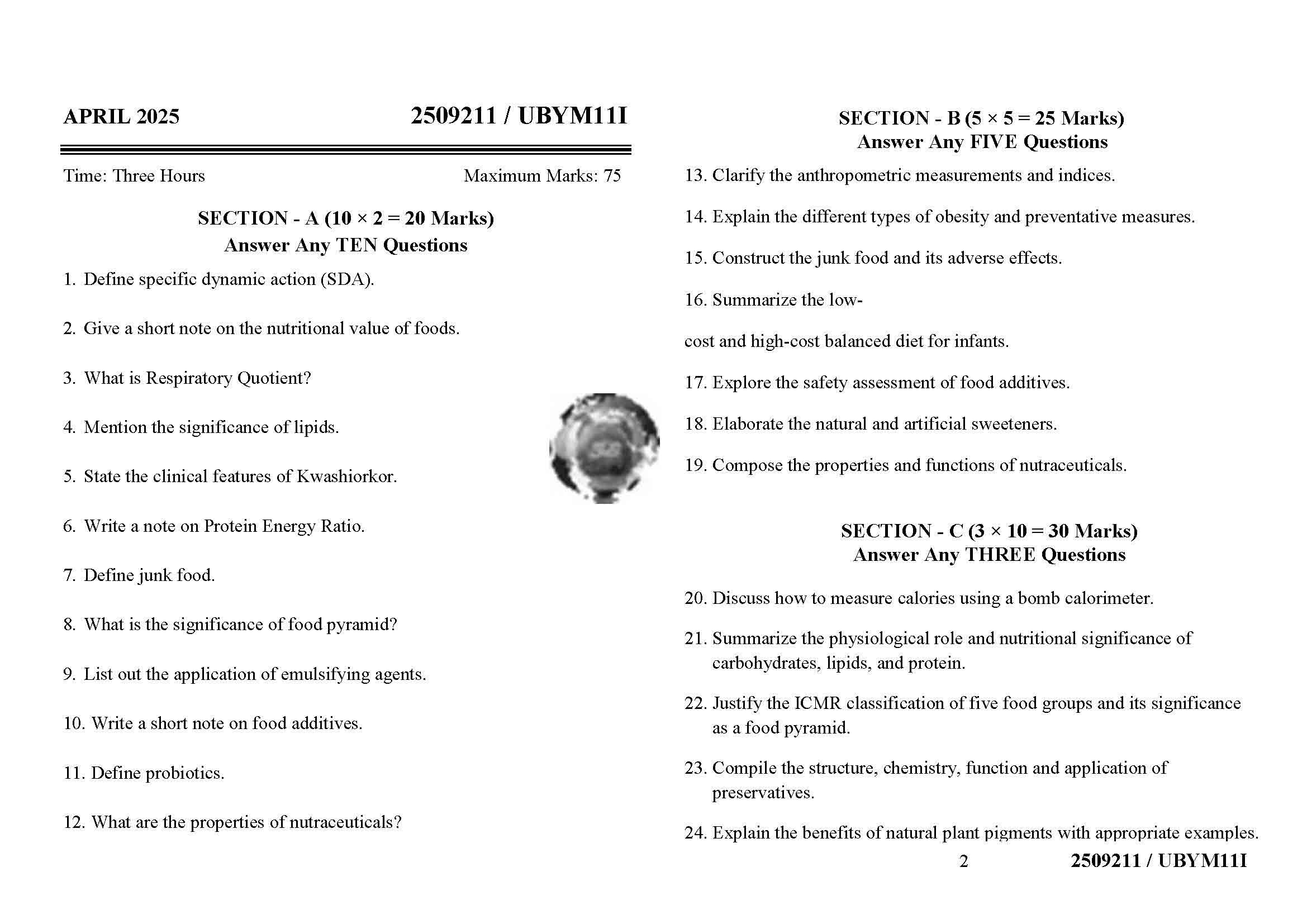 | 1. | Nutritional Biochemistry | UBYM11A | UBYM11A | UBYM11A1, UBYM11A2 | UBYM11A1, UBYM11A2 | UBYM11A | UBYM11C | UBYM11C | ||||