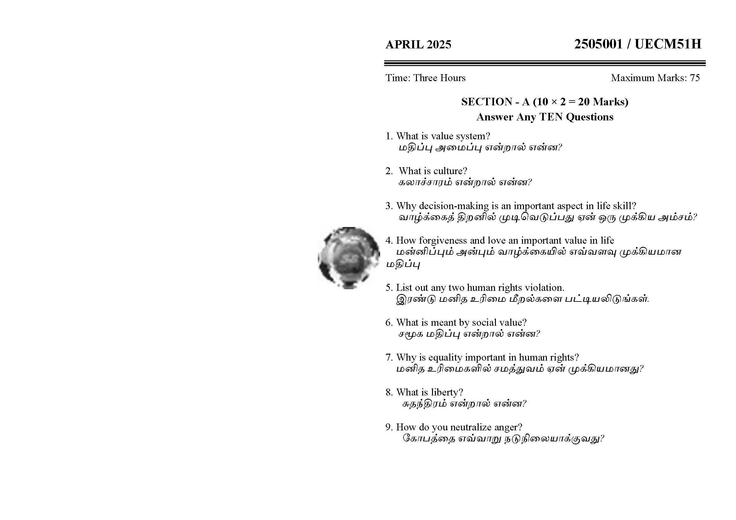 SRI SANKARA ARTS AND SCIENCE COLLEGE (AUTONOMOUS) QUESTION PAPERS