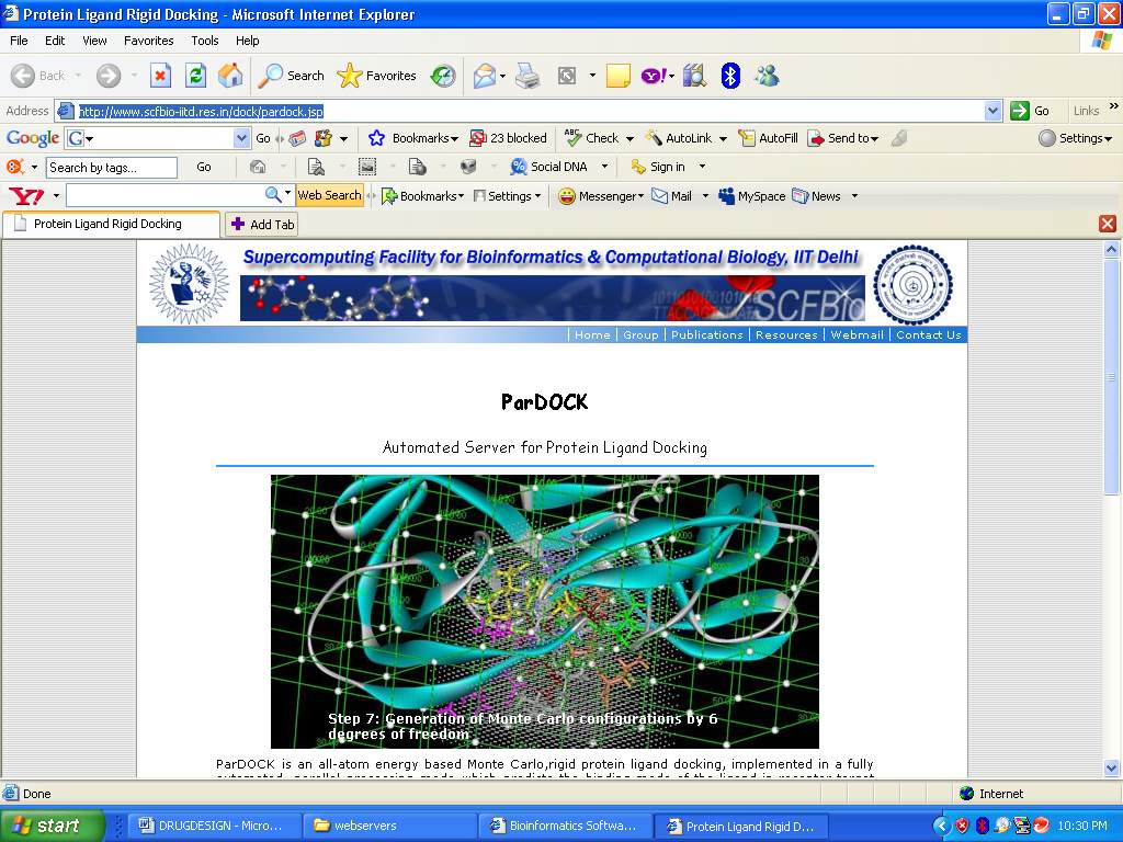 ParDOCK is an all-atom energy based Monte Carlo,rigid protein ligand docking, implemented in a fully automated, parallel processing mode which predicts the binding mode of the ligand in receptor target site.